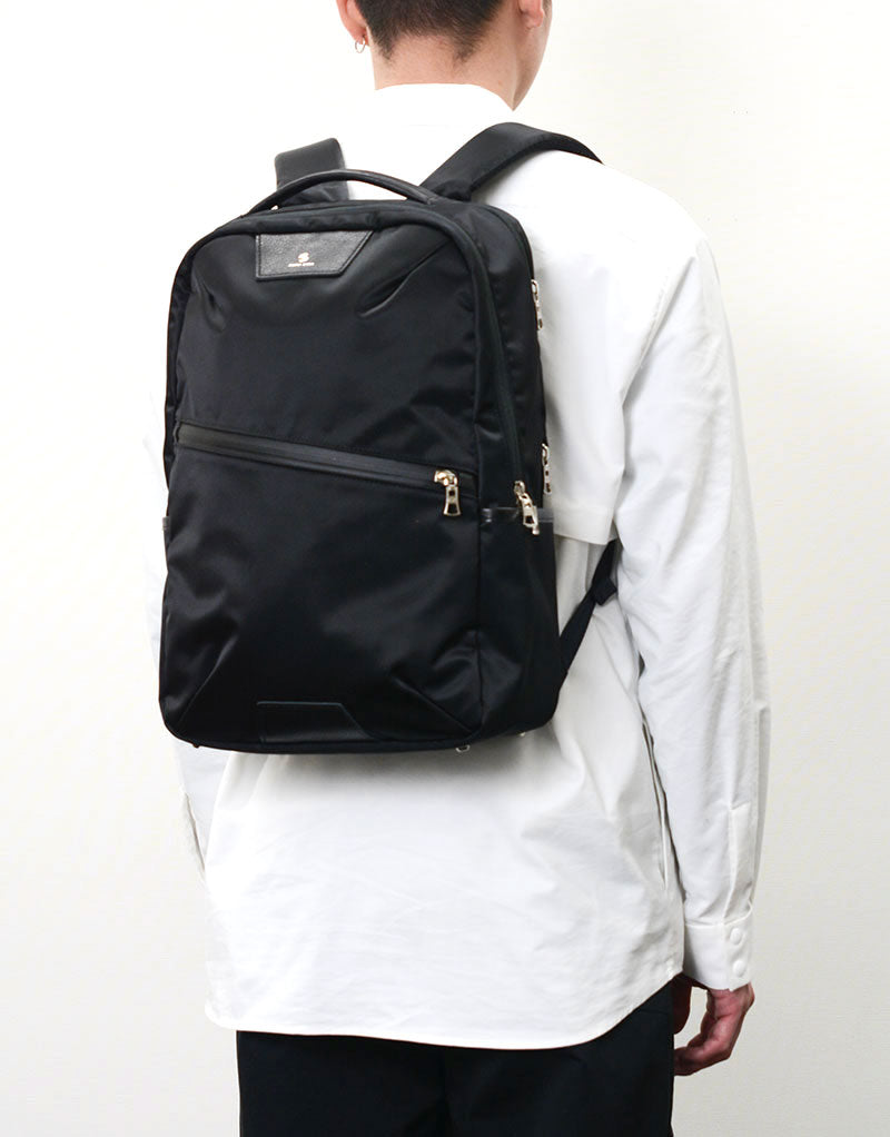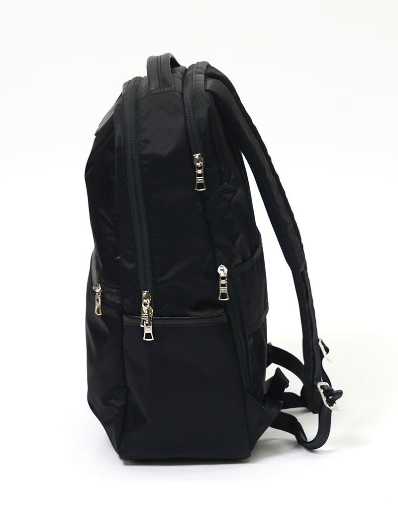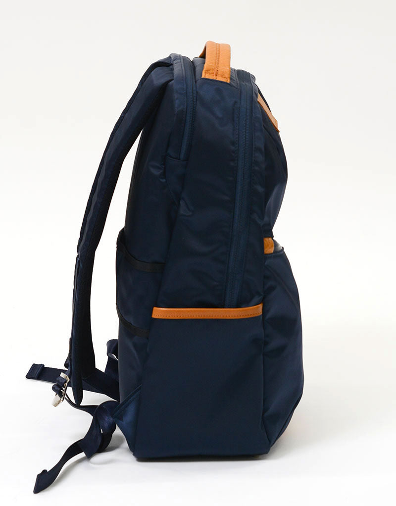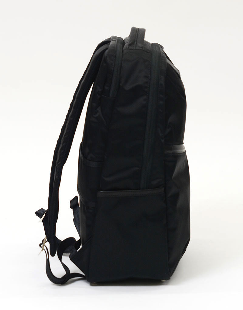 A daypack of the Progress (progress) series of master-piece (masterpiece), which has an impressive cow leather used in the glossy nylon twill and a cow leather used for combination. PVC coating is applied to the back of the fabric to achieve waterproofness and firmness. It is easy to use with a simple design and is used as a daily use and a viscadie.