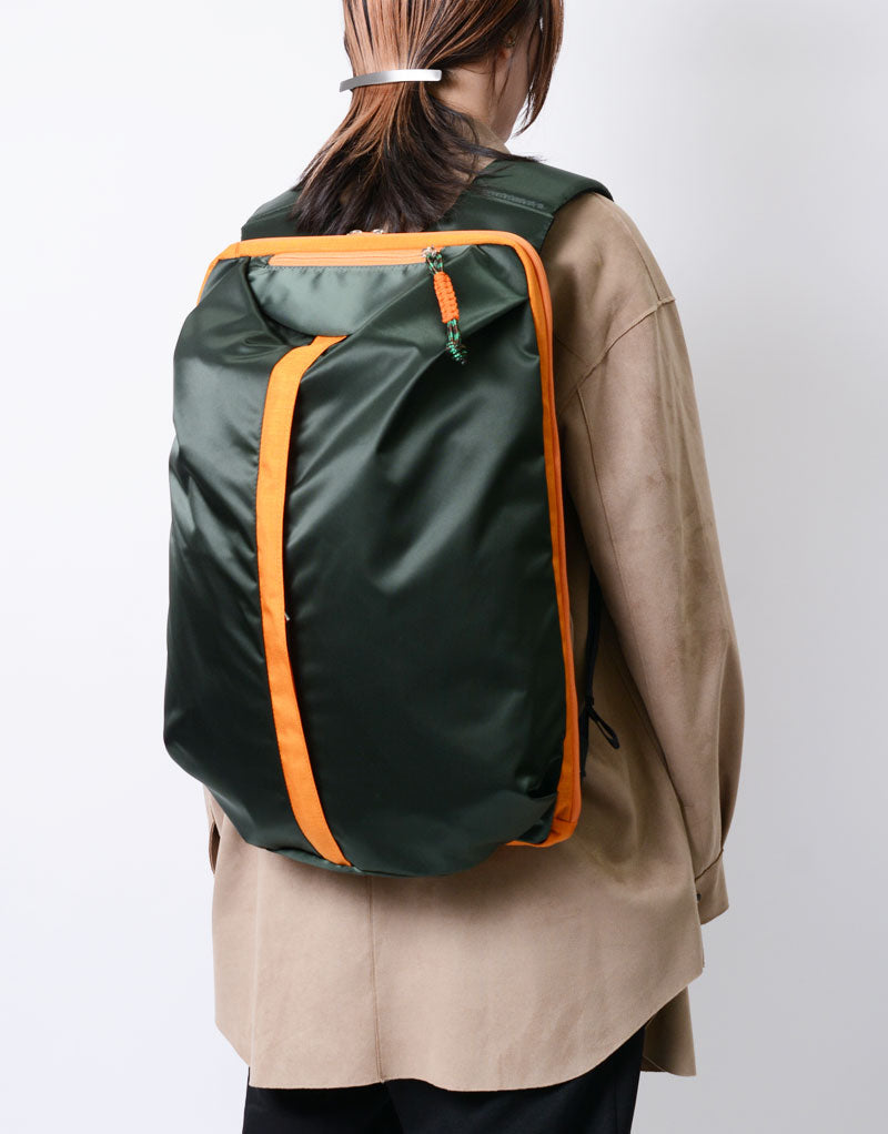 The main body material on the opposite side is vertical and horizontal and 66 nylon and two types of yarns, and the volume is blended by flat and dyed 1000D nylon yarn processed (using a machine to contain air in the thread itself). A random shadow appears, and we use a fabric with a natural feeling like a natural material.