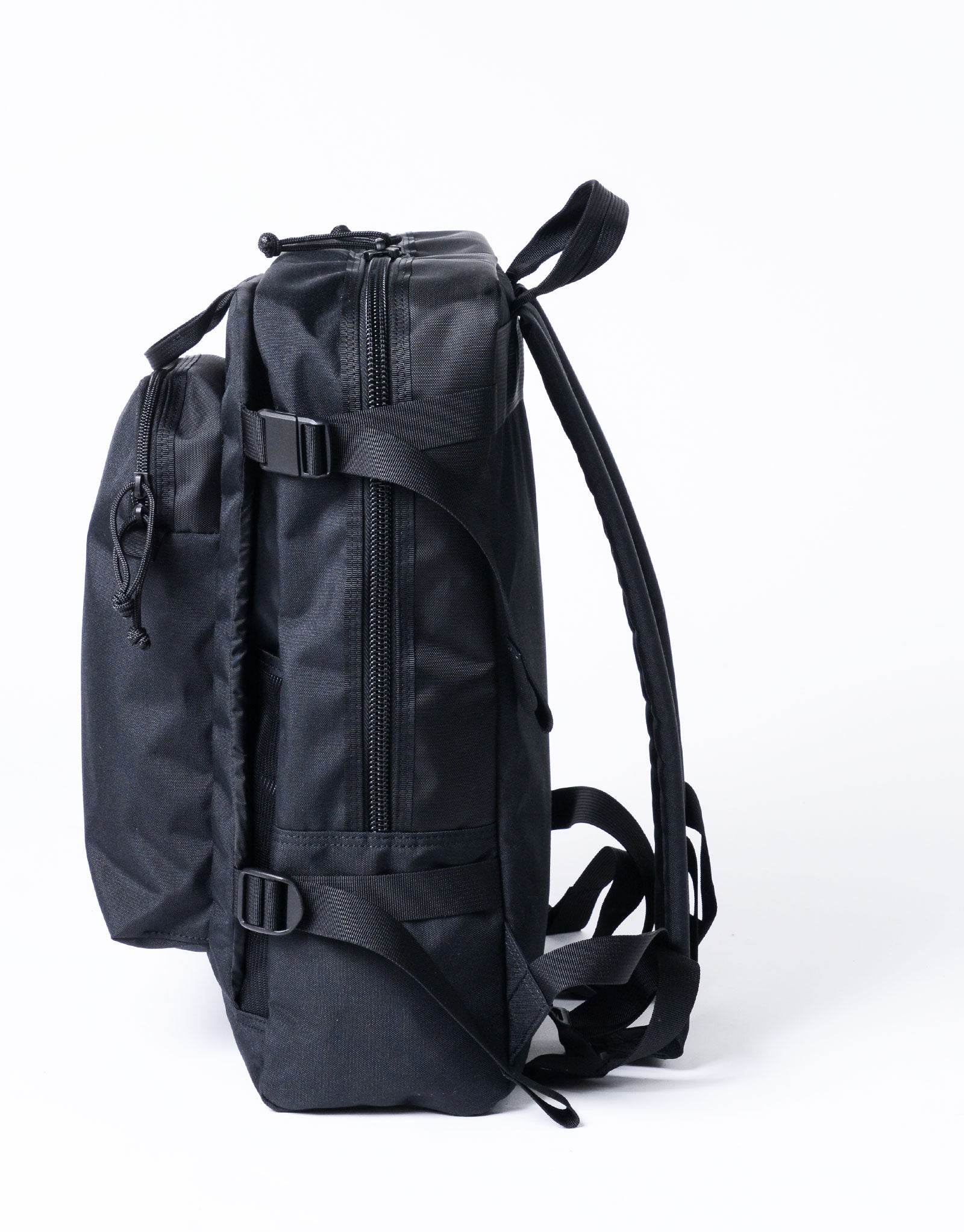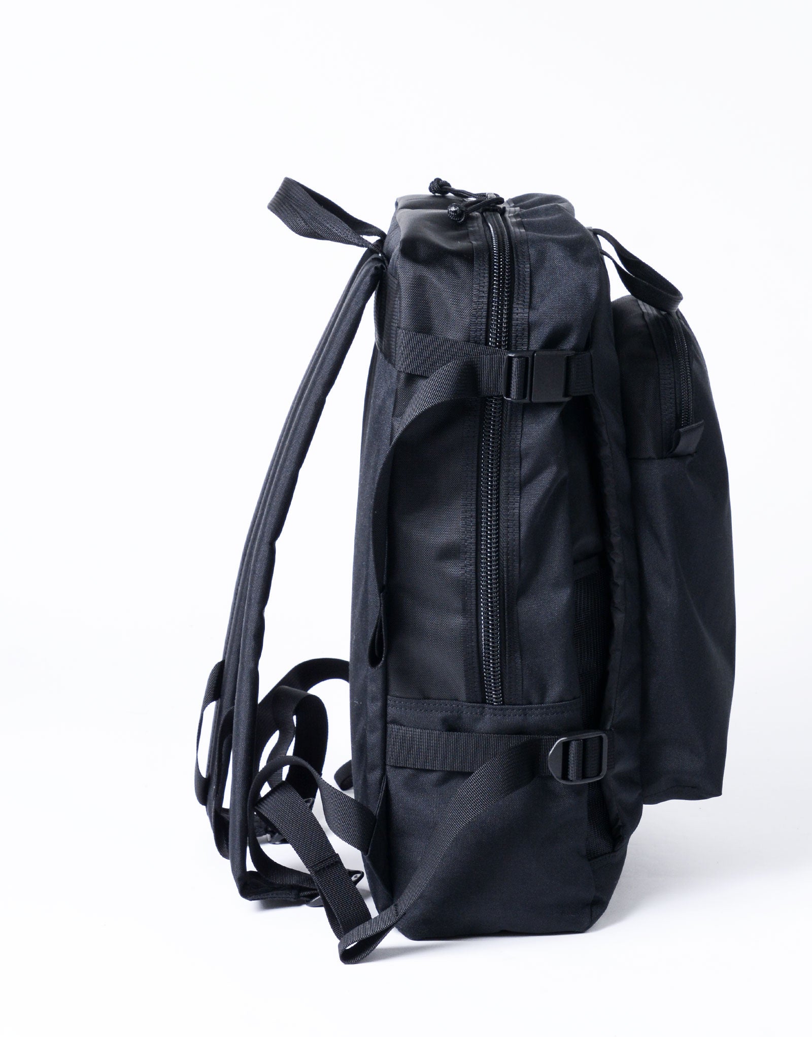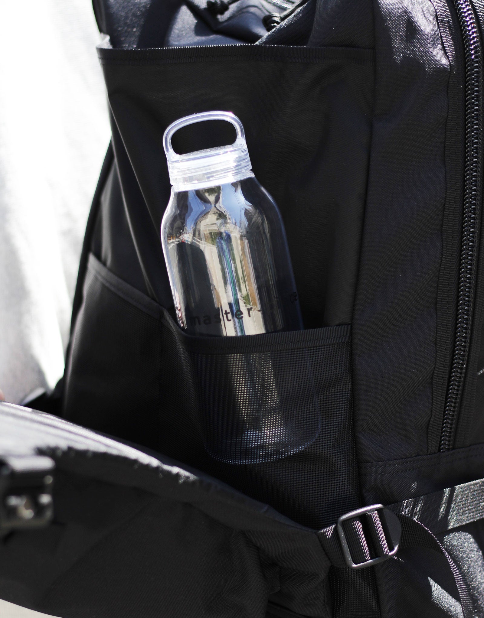 The biggest feature is the structure that holds the main storage area with a sturdy core material, protecting your luggage from external impacts. You can safely carry other electronic devices such as laptops, tablets, cameras, and more. This concept was inspired by a second-hand outdoor backpack, and we incorporated it into town use.