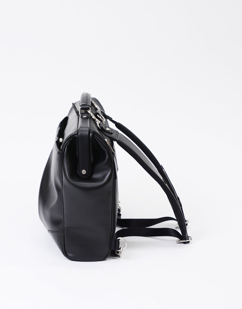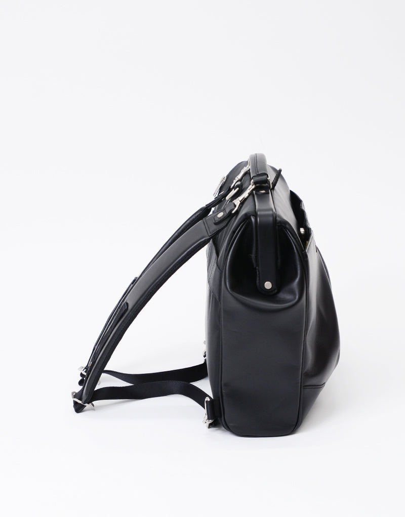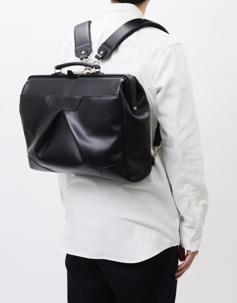 The shoulder strap can be stored in the rear belt, allowing the bag to be carried as a hand-held briefcase.