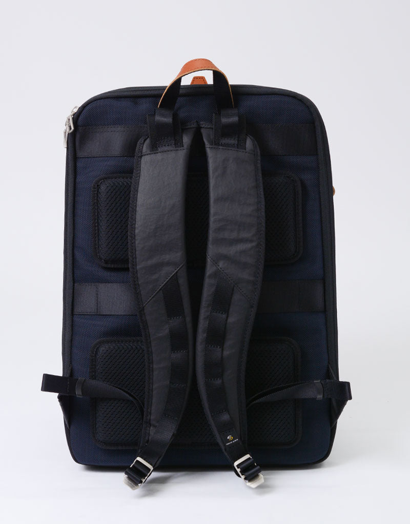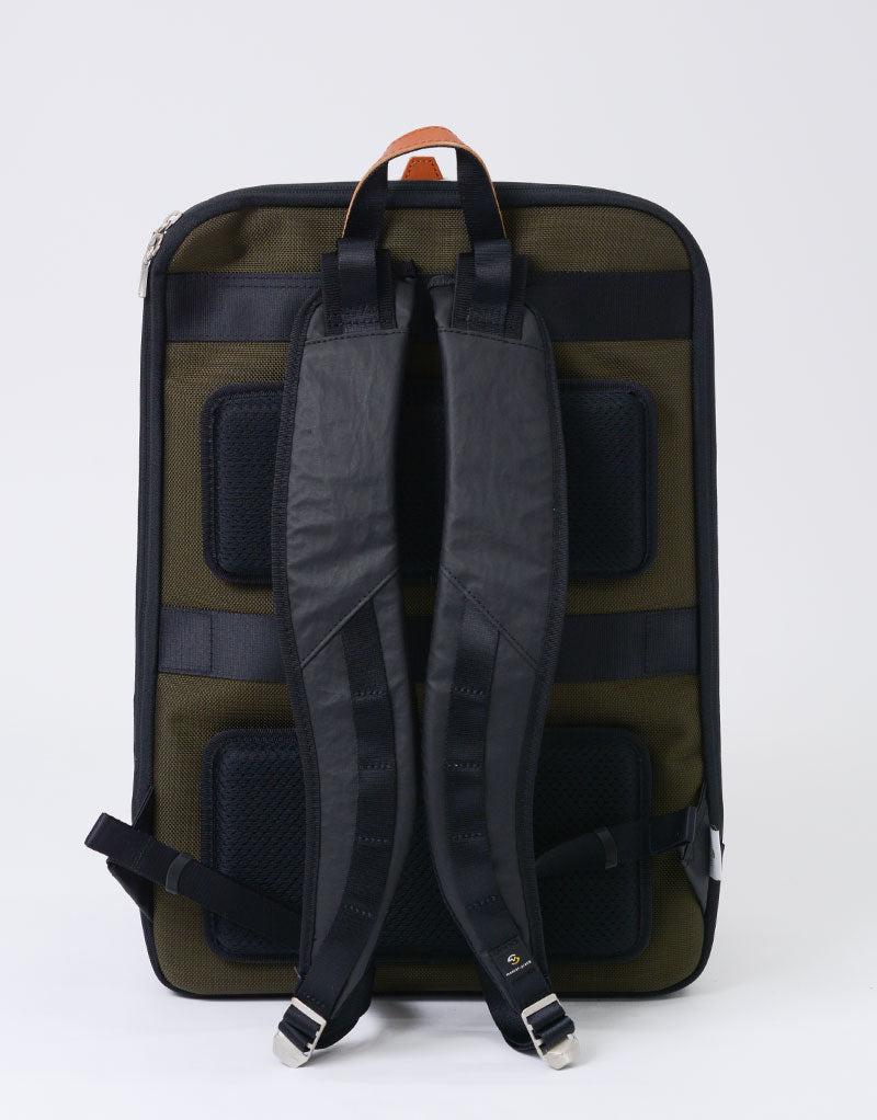 The shoulder harness is equipped with an original "m-strap" mechanism that reduces the burden of weight on the body. The storage compartment is equipped with storage for laptops and tablets, and pockets provided in appropriate numbers.