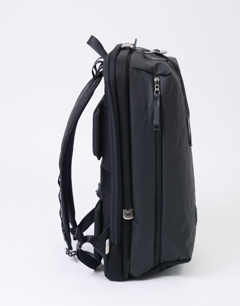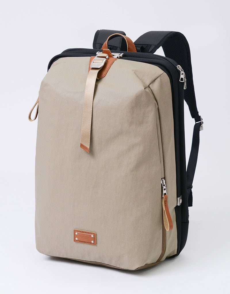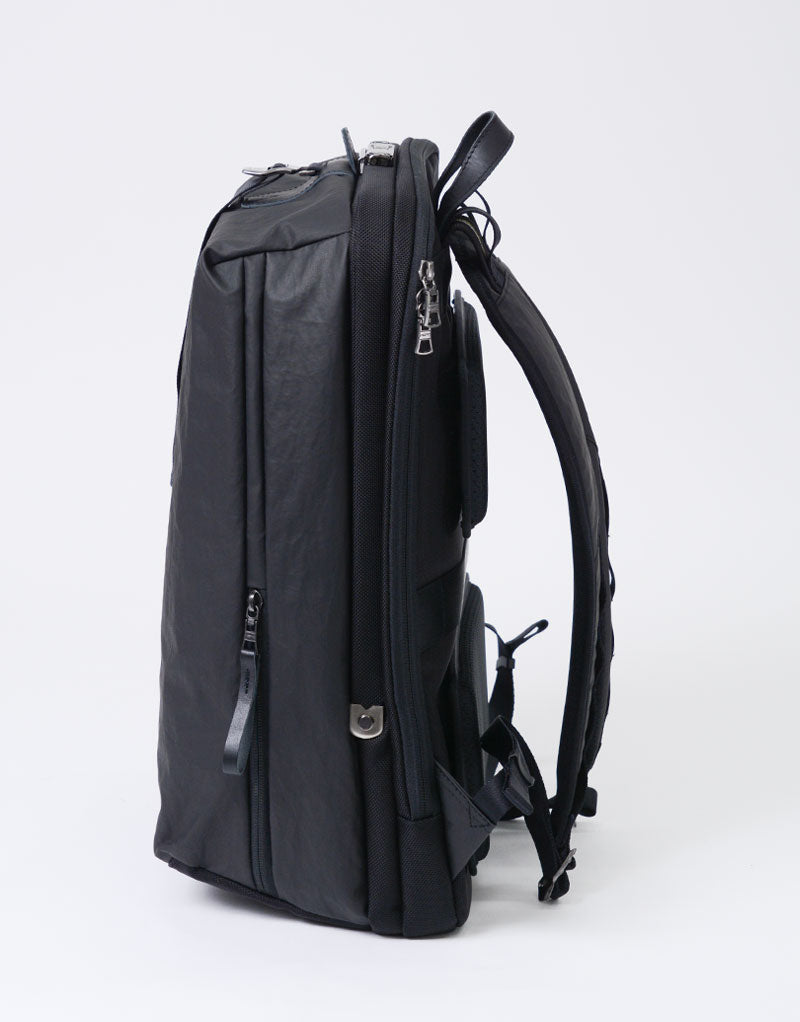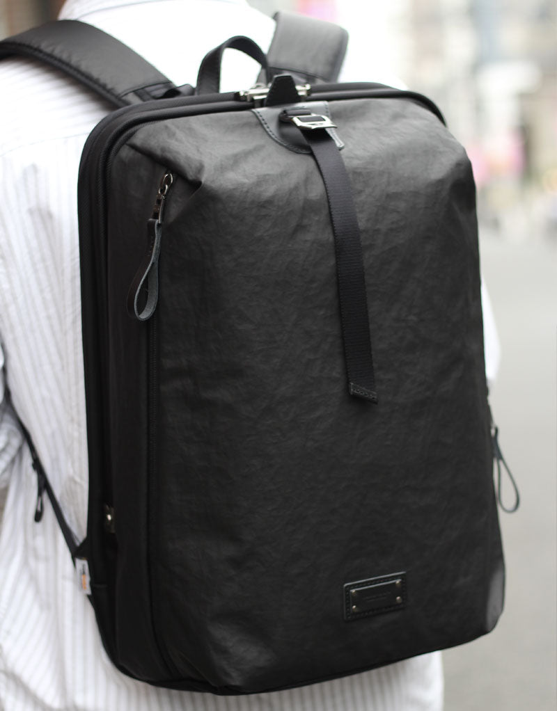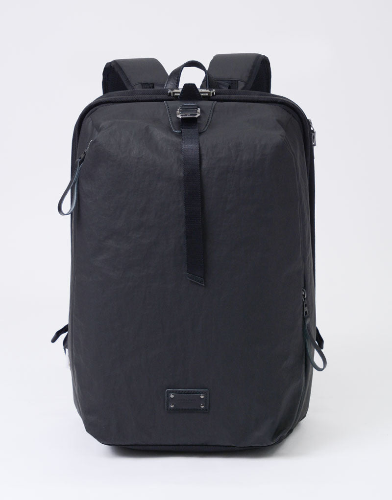 A backpack featuring functional details such as a dulles clasp and m-strap mechanism, combined with a casual design using high-strength CORDURA庐 nylon with 5 times the strength of regular nylon, finished with a special wrinkled coating.