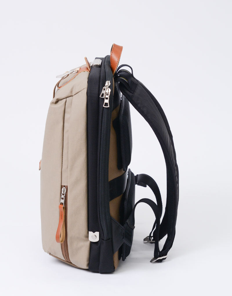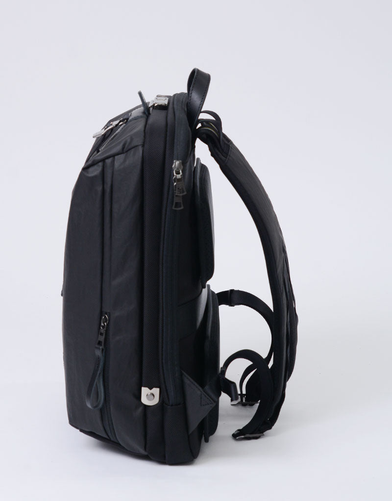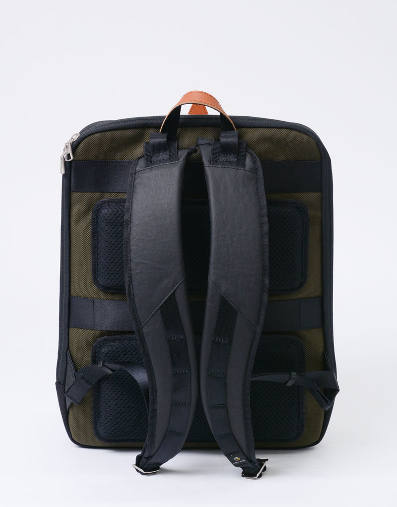 The shoulder harness is equipped with an original "m-strap" mechanism that reduces the burden of weight on the body. The storage compartment is equipped with storage for laptops and tablets, and pockets provided in appropriate numbers.