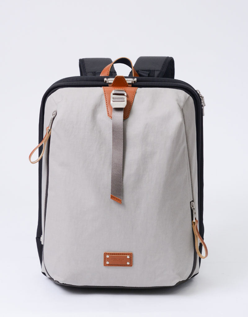The clasp may deform if subjected to strong impact or force. The dyeing and coating wrinkles on the main body fabric are not uniform and may appear in streaks. Please note that it is not completely waterproof and cannot prevent water from entering through needle holes in sewn parts. If the nylon material of the accessory fabric is left wet for a long time, the film on the back surface may peel off or cause deterioration, so be sure to dry it before storing. Since the water-repellent treatment is a surface treatment, the effect will diminish with use due to friction. Additionally, dust and other dirt adhering to the fabric will also reduce water repellency. Although a highly durable PU coating has been applied, the coating may peel off due to rubbing against hard objects. The accessory leather may have wrinkles and scratches unique to individual hides. Please note that color migration, discoloration, and fading may occur due to friction, etc. Please note that since this is natural leather, it may become stained if exposed to rain or water. Please note that product specifications are subject to change without notice.
