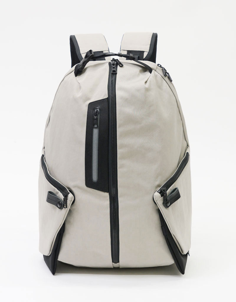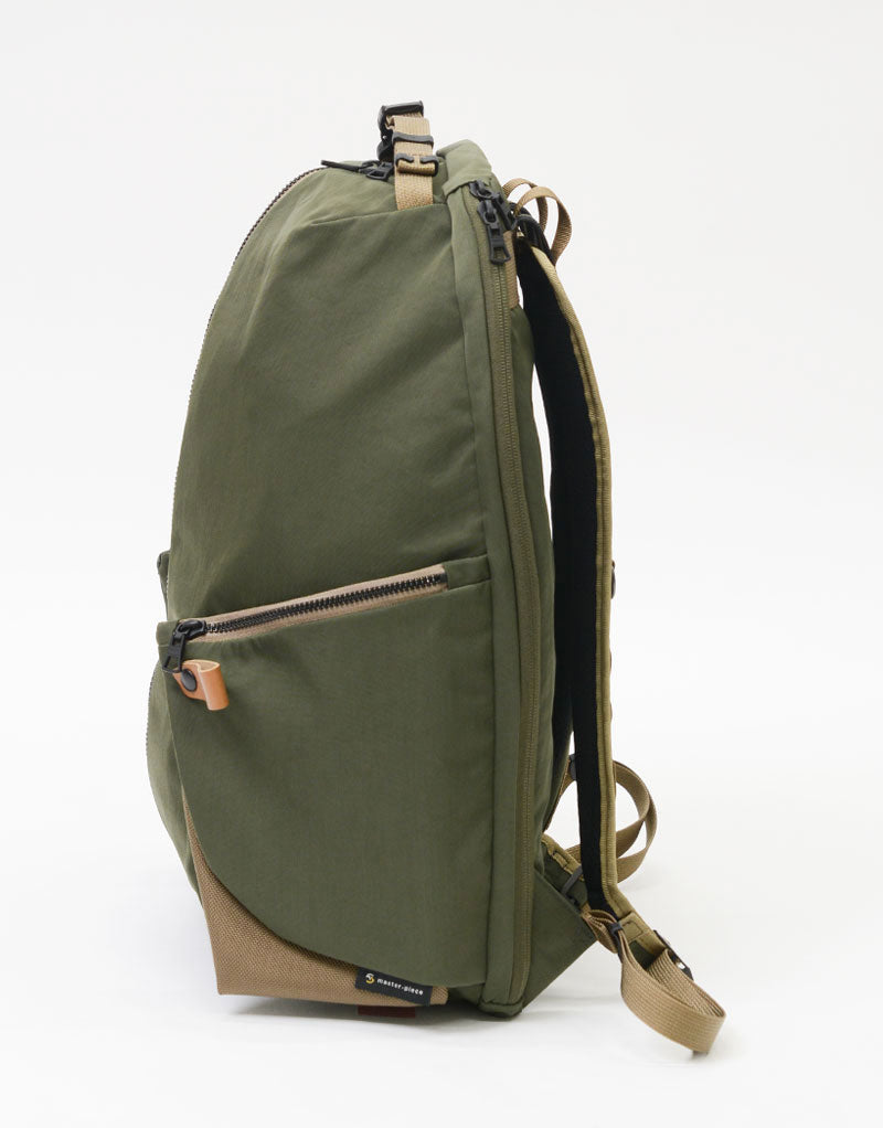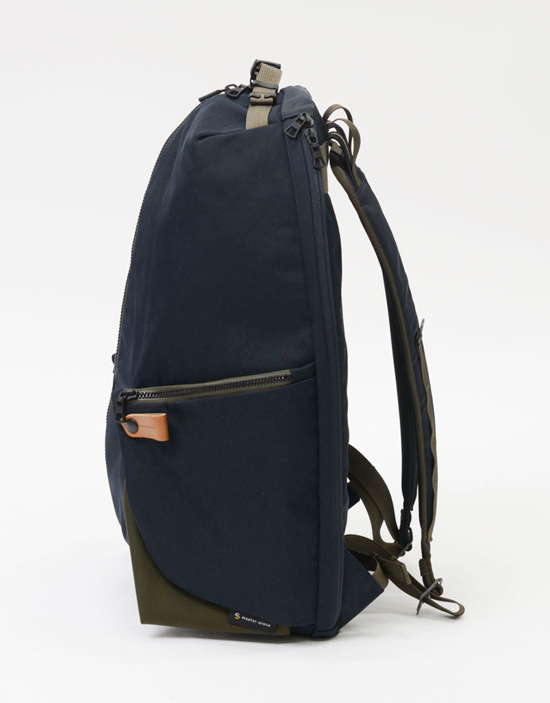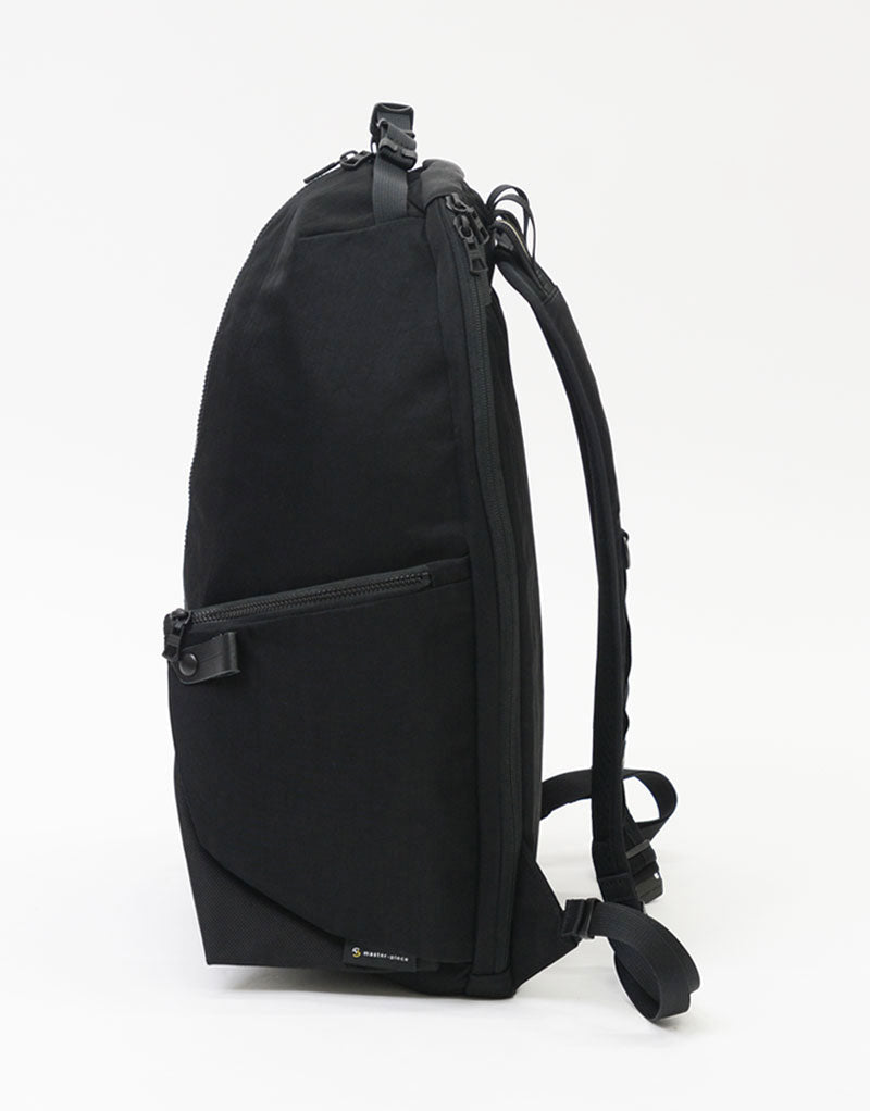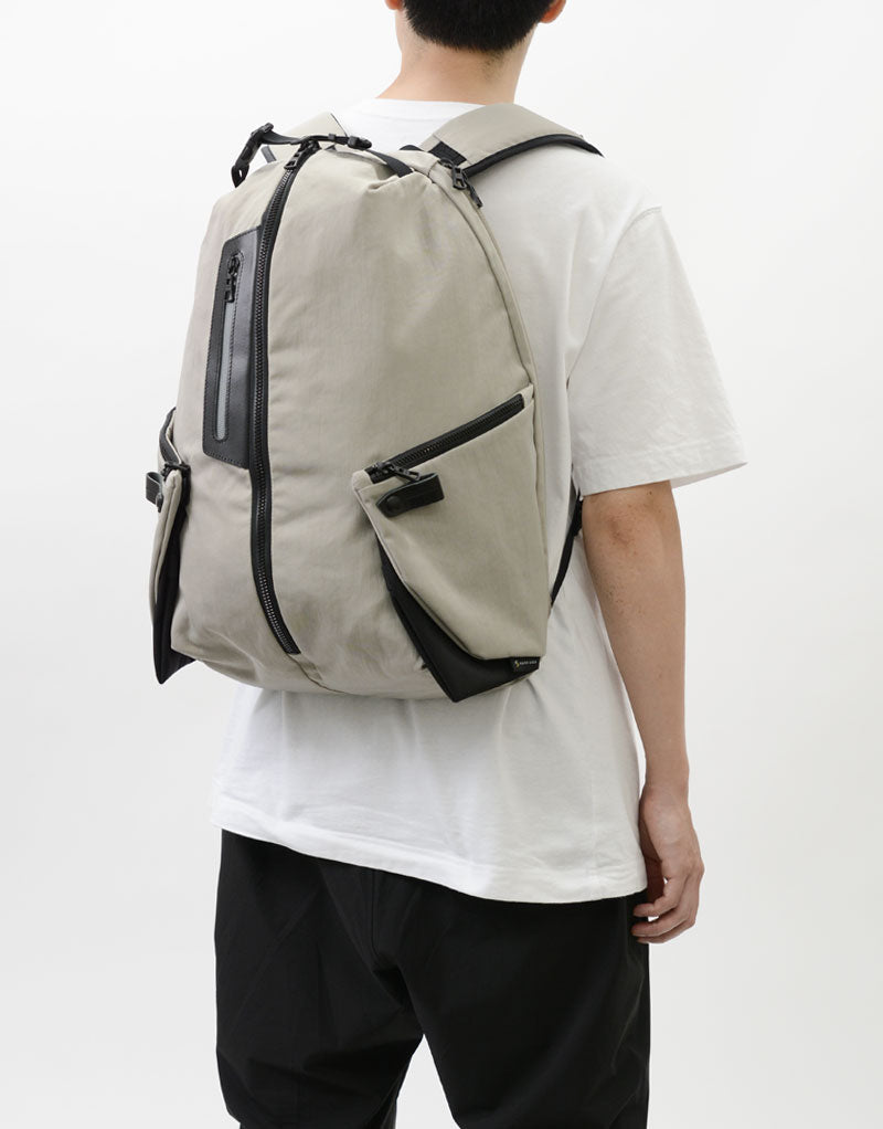 This item combines functionality and design, including a jet-dyed material, the original "m-strap" mechanism that reduces the load on the body, and a storage area that can be easily opened and closed by using magnetic functional parts.