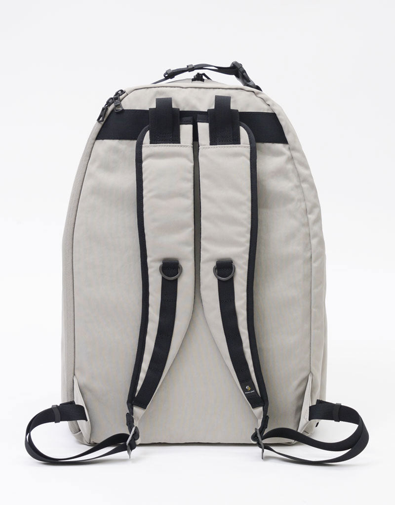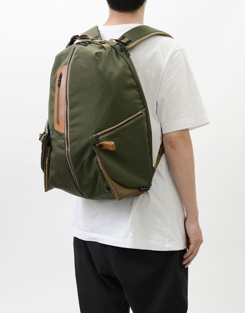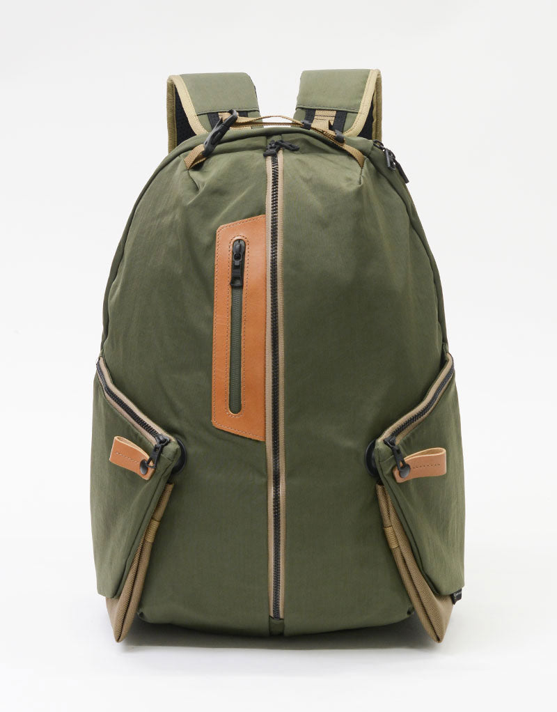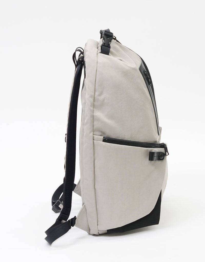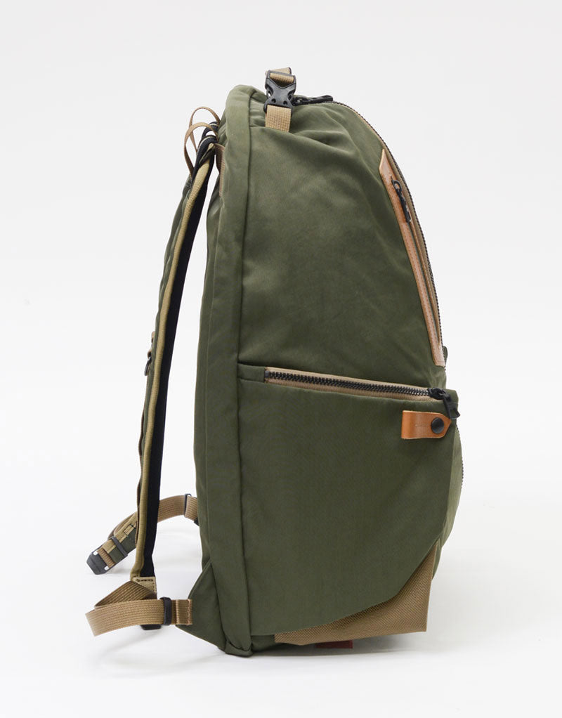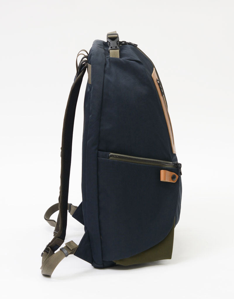 The main body material is a lightweight yet tightly made domestic nylon twill made from 110d warp thread and 210d weft. Liquid flow dyeing (also known as jet dyeing, a method of dyeing the fabric onto the flow of dye that is sprayed from the nozzle) creates a natural wrinkled feel and a calm gloss. After dyeing, the surface of the fabric is treated with a weak water-repellent finish.