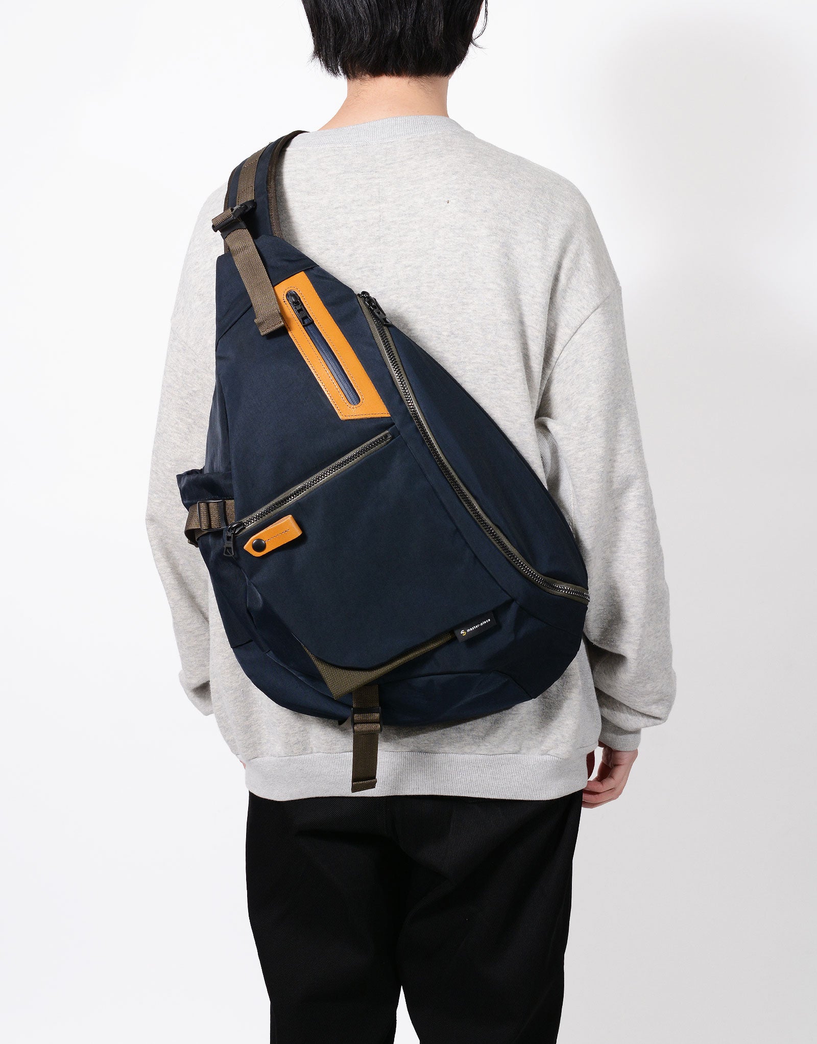 Despite its compact sling design, it ensures maximum storage capacity. The dedicated PC sleeve can accommodate even a MacBook Pro 14-inch.