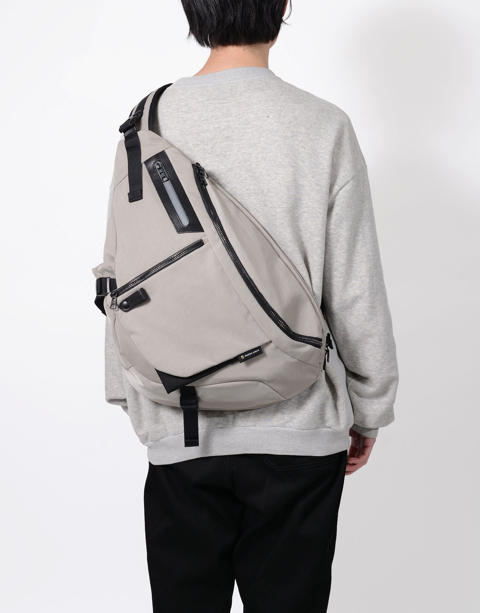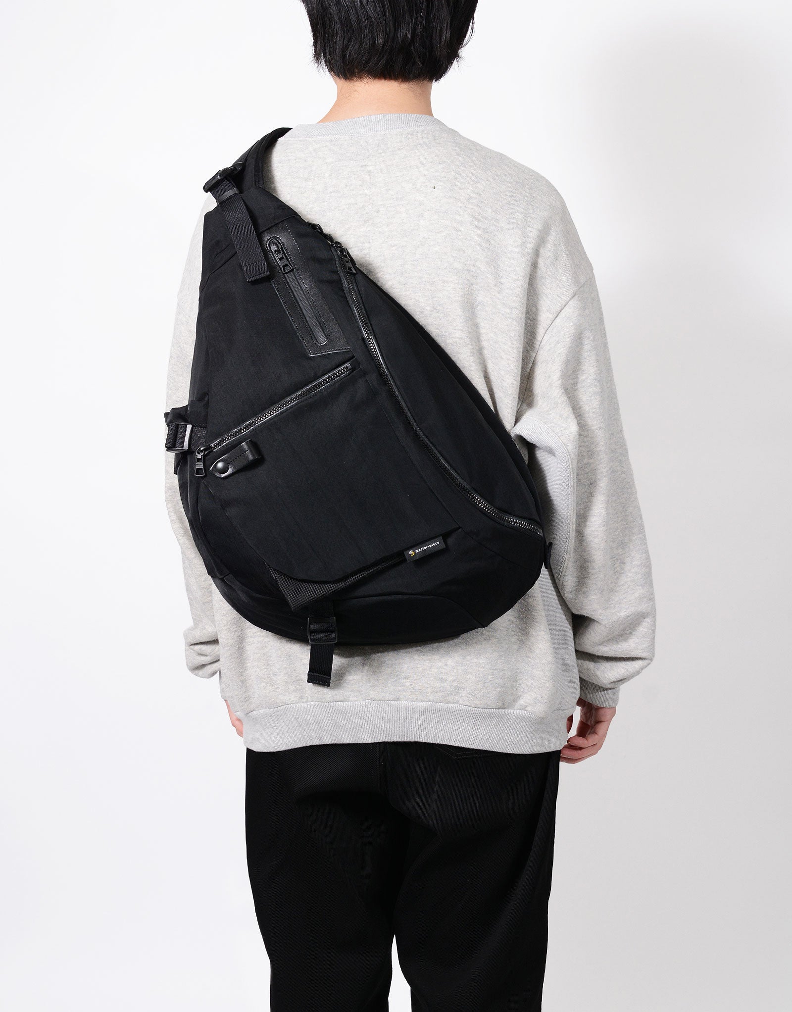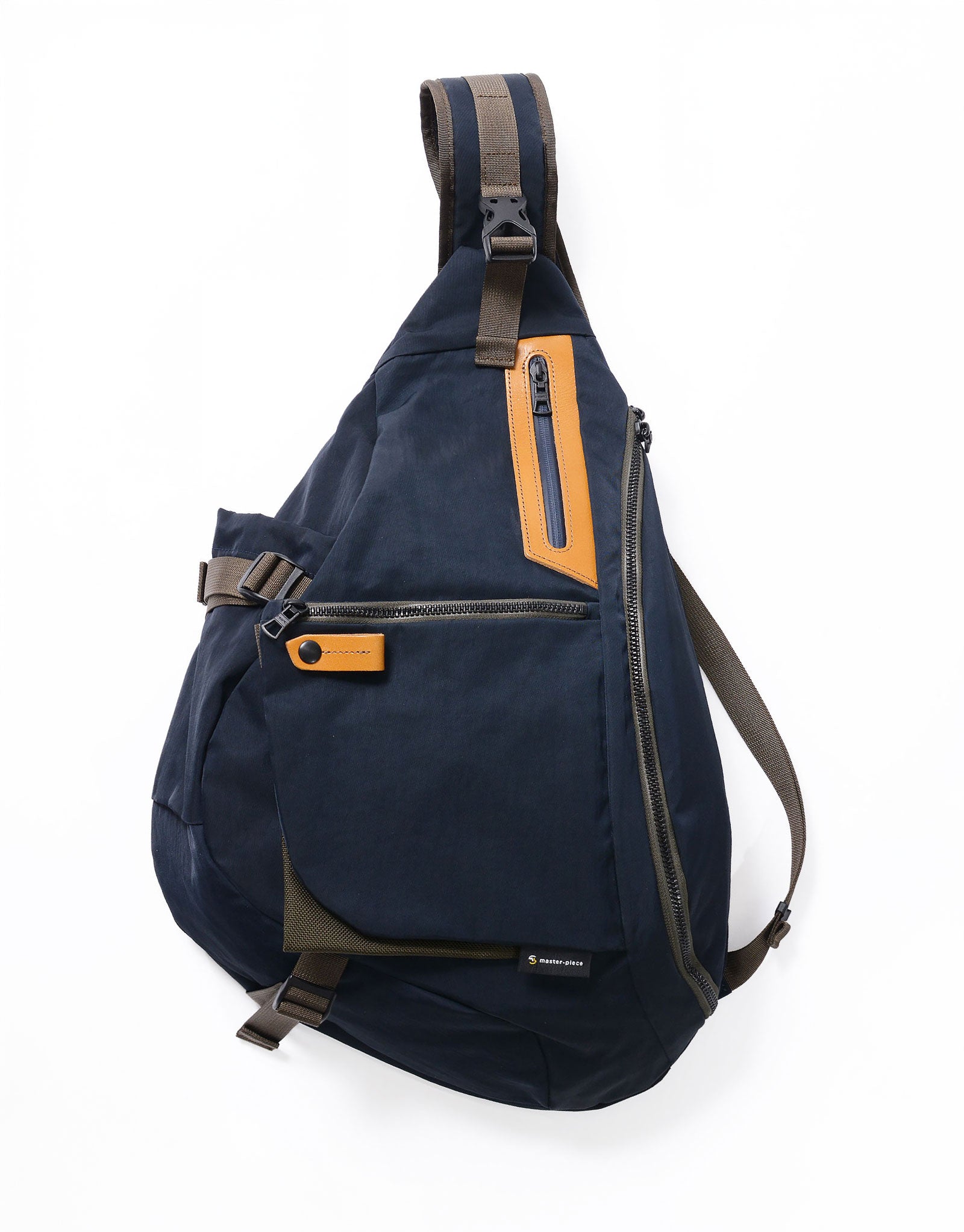 A series that embodies "master-piece essence" by combining functionality and design, featuring a combination of different materials��Japanese nylon twill with natural wrinkles and subdued luster from jet dyeing, paired with eco cow leather��and practical features such as FIDLOCK magnetic closure on the front for easy opening and closing.