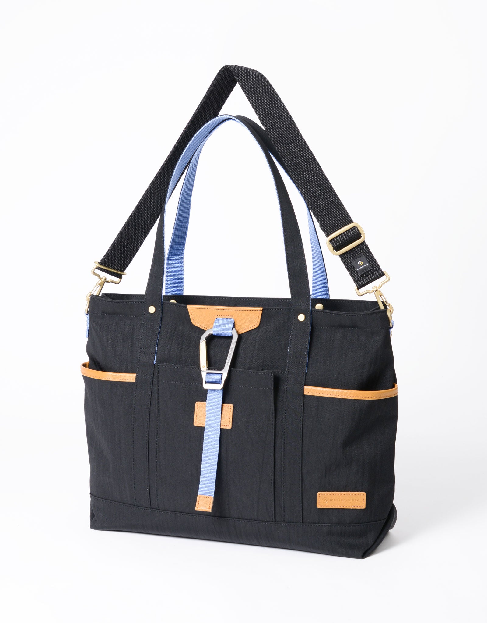 The original black and gold carabiner also adds a nice accent to the chic look and adds a unique touch. The main storage can store A4 documents and has side pockets, making it a unisex design.