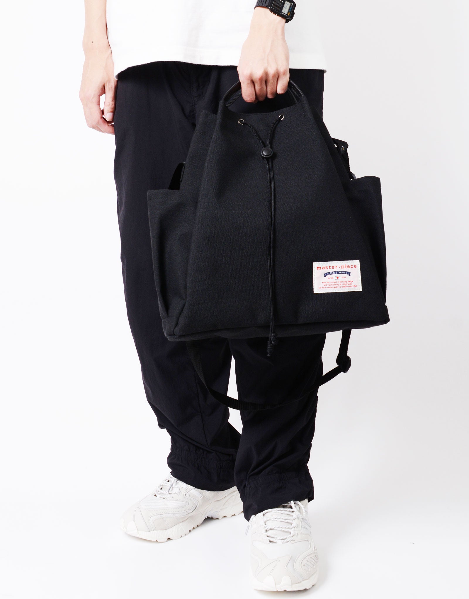 This 2-way design allows the bag to be used either as a drawstring bag or as a tote, enabling flexible styling to match your lifestyle.