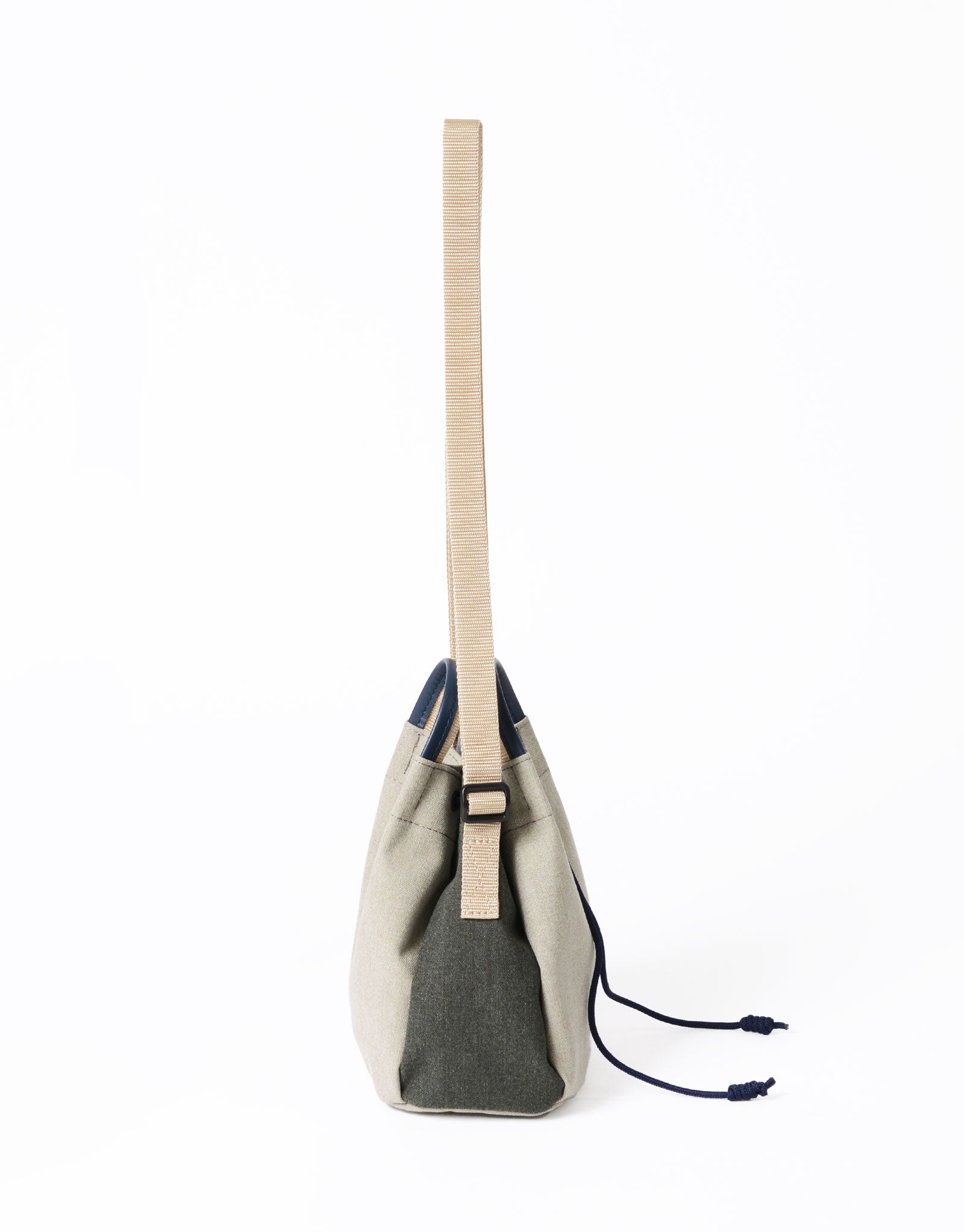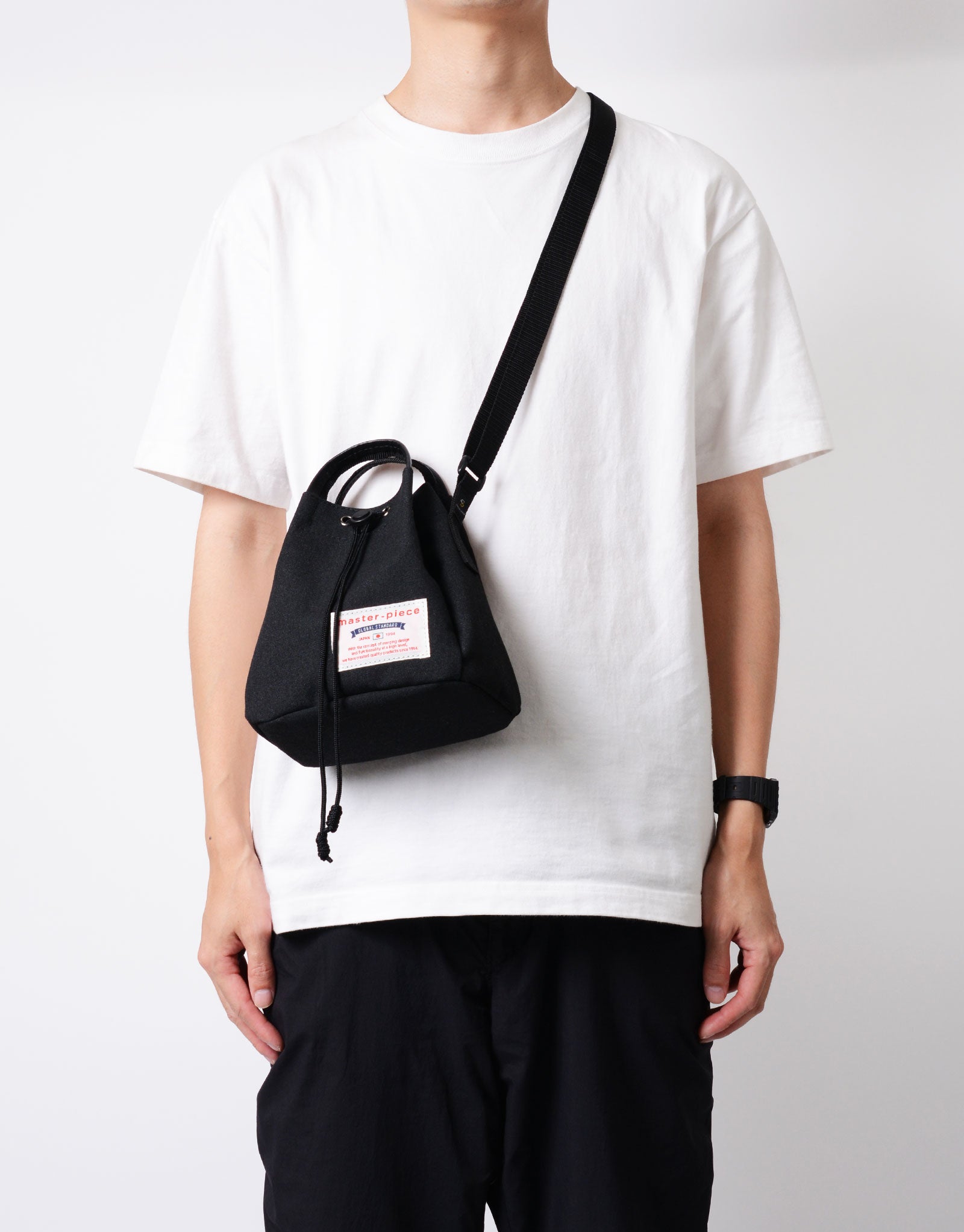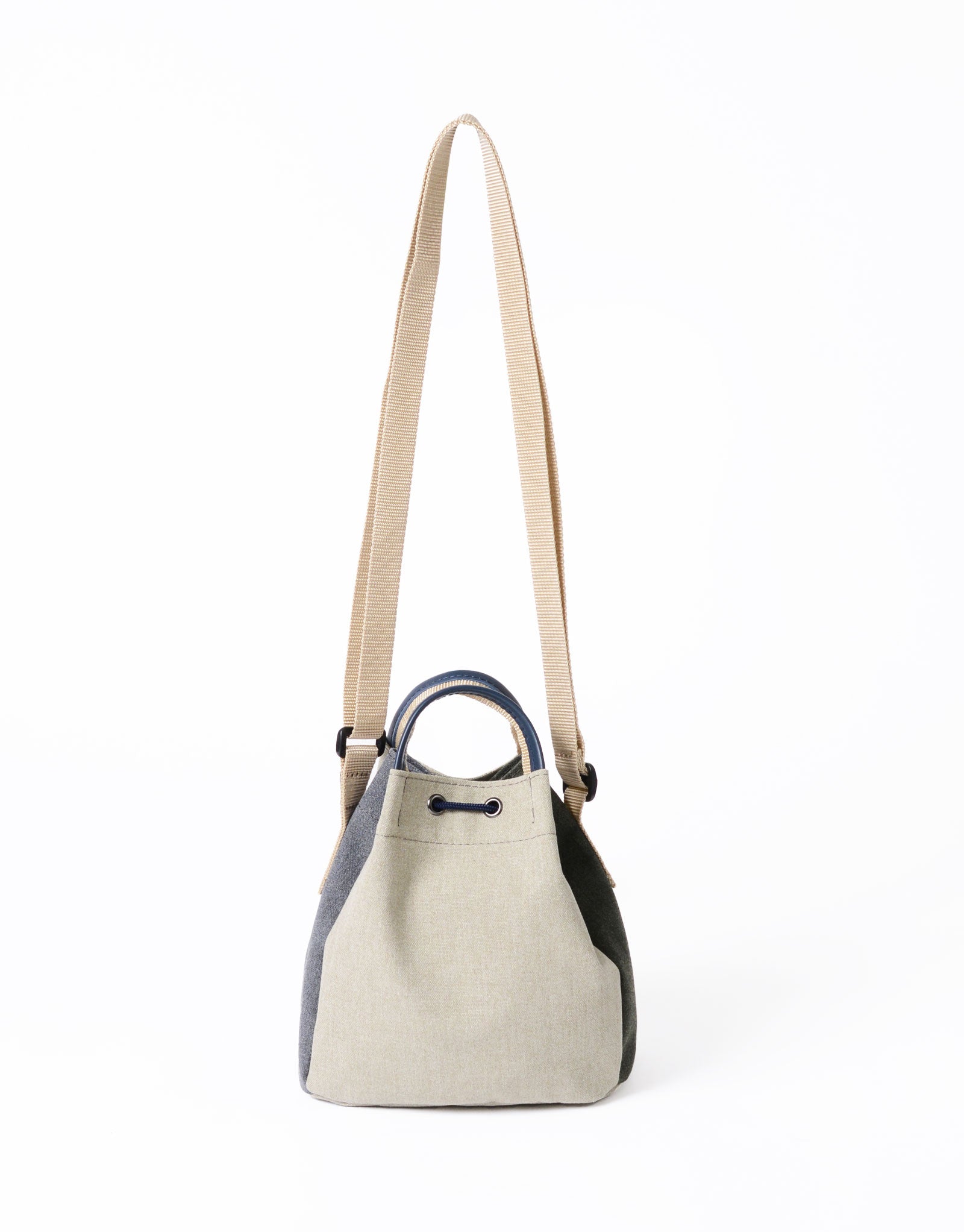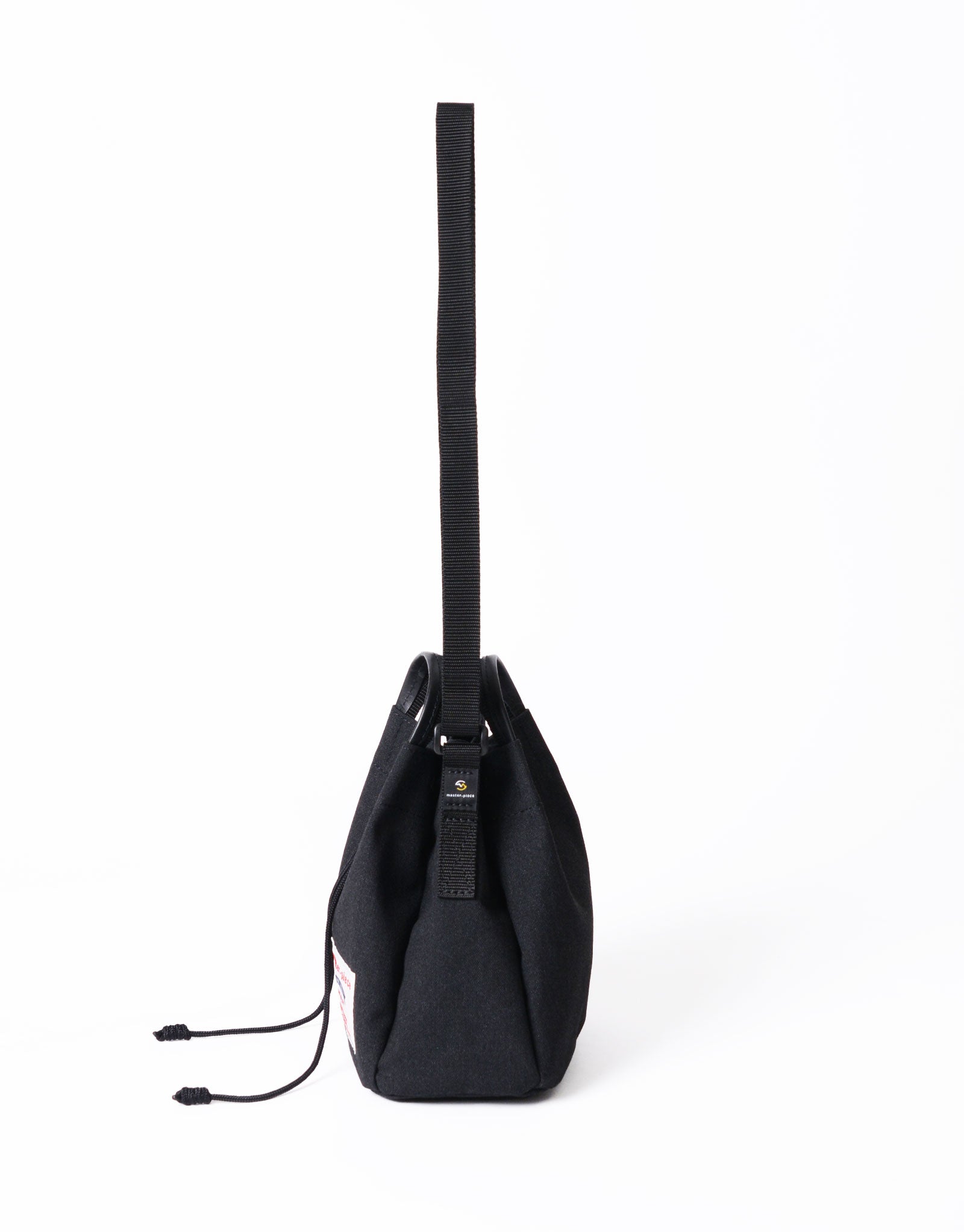 This bag is made from environmentally conscious GRS-certified recycled polyester as the main material and features a versatile 2-way design that can be used as both a drawstring bag and a mini tote.
