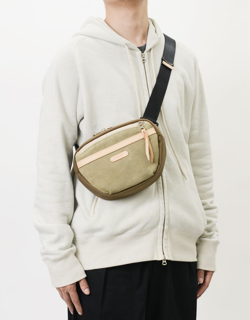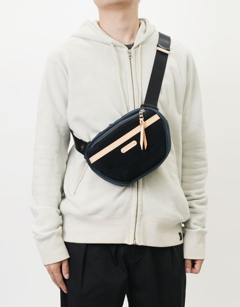 The main body fabric is INVISTA's 1680d CORDURABallistic庐 nylon, which has approximately 5 times the wear and tear strength and durability of normal nylon, and the back side is treated with PU processing to further improve strength. The supplied leather is made by tanning thick North American hides with chrome, then horizontally dividing the layer with the silver surface (the surface of the leather) and the lower layer, and smoothing the lower layer of leather to a thickness of 2 mm. , carefully buffed with sandpaper and finely brushed. Due to the thickness of the leather, it is not possible to completely dye the leather all the WAY to the core in one go, so the leather is dyed slowly in two parts, and during the second dyeing process, the waterproofing agent is penetrated deep into the leather to increase its waterproofness. Another accessory leather is a 1.8m/m thick eco-friendly leather that is tanned with 100% vegetable tanned without using chemicals, dyes, or other substances harmful to the human body that cause environmental pollution or hexavalent chromium. Made of Nume cow leather (NISSENKEN Oeko-Tex Standard 100 certified). This is a casual series that features tanned leather while combining various materials in the same color, such as CORDURA庐 Ballistic fabric 1680d nylon, waterproof suede, and YKK Aquaguard zippers.